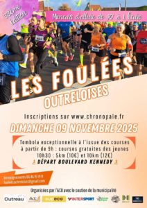 Le Dimanche 09/11/2025 auront lieu Les Foulées Outreloises. C’est le moment pour vous inscrire ! 2 distances au choix : 5 ou 10km , et des courses pour les enfants. Alors n’hésitez pas, inscrivez-vous sur https://in.njuko.com/foulees-outreloises-20251759568605012 Partager sur les réseaux sociaux Partager ce contenu Ouvrir dans une autre fenêtre Facebook Ouvrir dans une autre fenêtre X